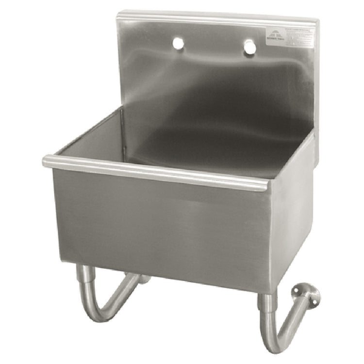 The Advance Tabco 19-18-23 Multiwash Hand Sink is a wall-mounted unit with dimensions of 23"W x 19-1/2"D x 30-3/4"H, engineered for versatility and efficiency in various industrial and commercial settings. This model features a bowl size measuring 16" front-to-back by 8" deep, providing ample space for thorough handwashing. An 8-1/2"H backsplash is integrated to protect walls from water splashes, while the sink is precisely punched with one set of faucet holes spaced 8" on center, facilitating easy installation of compatible faucets. The unit includes a 3-1/2" rear basket drain for effective water drainage. Constructed from 16-gauge 304 stainless steel, this sink ensures long-lasting durability and resistance to corrosion. The design is complemented by tubular stainless steel wall supports, offering robust and reliable wall mounting. Ideal for healthcare, food service, and laboratory environments, the Advance Tabco 19-18-23 Multiwash Hand Sink combines functionality with a clean, professional appearance, making it a practical choice for maintaining hygiene standards in demanding settings.