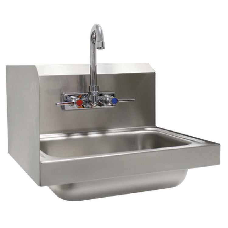 The Advance Tabco 7-PS-66L Hand Sink Wall Mounted 14" Wide X 10" Front-to-back X 5" Deep Bowl is a compact and durable solution for sanitary requirements in various professional environments. Engineered with precision, this hand sink is crafted from 20-gauge 304 stainless steel, known for its corrosion resistance and longevity. Its sleek, wall-mounted design maximizes space efficiency, making it suitable for tight commercial kitchens, healthcare facilities, and laboratories. The sink bowl measures 14 inches in width, 10 inches from front to back, and 5 inches in depth, providing ample space for effective handwashing while minimizing water usage. The 7-3/4-inch high left side splash offers additional protection against water spillage and maintains cleanliness in surrounding areas. The heavy-duty splash-mounted faucet ensures robust and consistent water flow, enhancing user convenience. Installation is simplified with an included wall bracket, promoting sturdy and secure mounting. This hand sink meets NSF certification standards, indicating its compliance with rigorous public health and safety guidelines. Additionally, it carries the cCSAus certification, denoting adherence to Canadian and U.S. standards. The Advance Tabco 7-PS-66L Hand Sink is a reliable choice for industries demanding high hygiene standards, offering a blend of functionality and durability.
