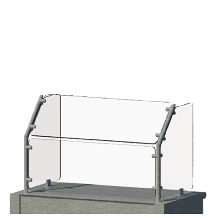 The Advance Tabco AFC-36 Food Shield Cafeteria Style 45° Degree Angled Front is a meticulously designed protective fixture ideal for varied food service environments. It features a 45-degree angled front with fixed front glass, providing an unobstructed view and effective barrier between food and customers. With a length of 36 inches and a height of 23-3/8 inches, this food shield is constructed from 1/4-inch thick heat-tempered glass, ensuring durability and safety. The side panels, measuring 18 inches deep, are crafted to meet NSF requirements, satisfying health and safety standards crucial for professional food service operations. The stainless steel tubing, measuring 1 inch and complete with end caps, adds structural integrity and a sleek aesthetic appeal. This product is also recognized as a sneeze guard or breath shield and is essential for cafeterias and other open food display settings. Its robust construction and thoughtful design make it an invaluable addition for establishments prioritizing hygiene and customer satisfaction, such as schools, buffets, and hospital cafeterias. The Advance Tabco AFC-36 stands out for its combination of functionality, safety, and compliance, making it a reliable choice for diverse market segments within the food service industry.