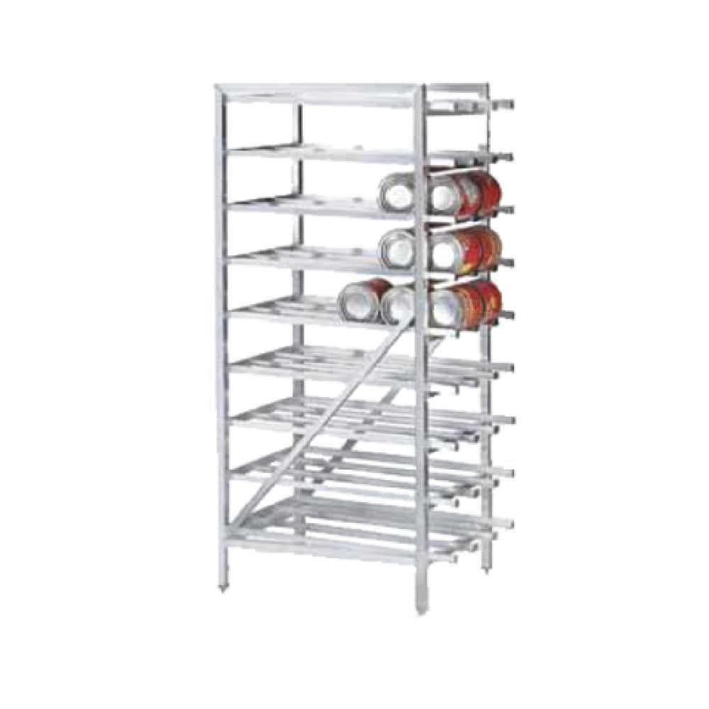 The Advance Tabco CR10-162-X Special Value Can Rack is a stationary design with bullet feet, thoughtfully engineered for seamless efficiency in food storage and retrieval. This can rack features sloped glides, enabling automatic can retrieval, which significantly enhances operational workflow in bustling kitchen environments. The rack is specifically designed to accommodate both #10 and #5 cans, providing versatility for various storage needs. Constructed from durable aluminum, it assures longevity and sturdiness in high-demand settings. With a remarkable capacity to hold up to 162 #10 cans or 216 #5 cans, this can rack is an indispensable asset for foodservice establishments that require robust and reliable storage solutions. The stationary design ensures stability, while the innovative bullet feet provide a solid foundation, reducing the risk of tipping or movement. Ideal for use in commercial kitchens, canneries, or food distribution centers, the Advance Tabco CR10-162-X Special Value Can Rack caters to diverse market segments within the foodservice industry. Its combination of capacity, durability, and efficient design makes it a practical choice for operations that prioritize both functionality and space optimization.