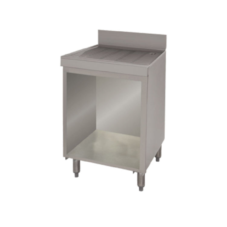 The Advance Tabco CRD-4B Underbar Basics™ Drainboard Open Cabinet Base is meticulously designed for efficiency and durability in commercial settings. With dimensions of 48 inches in width, 21 inches in depth, and 33 inches in height, it offers substantial space for various applications. Constructed entirely from stainless steel, this unit guarantees longevity and resistance to corrosion, making it a dependable choice for high-traffic environments. The design features a 4-inch backsplash to protect walls from splashes and spills, ensuring a cleaner workspace. Equipped with a 1-inch IPS drain, the drainboard efficiently manages water runoff, enhancing hygiene and ease of use. The stainless steel legs come with adjustable bullet feet, providing stability on uneven surfaces while allowing for customization in height. NSF certification underscores its compliance with stringent health and safety standards, making it suitable for bars, restaurants, and catering services. The Advance Tabco CRD-4B is an ideal choice for those seeking a robust and versatile underbar solution, combining practical features with a sleek, professional look to enhance any service area. Its open cabinet base offers easy access and additional storage, proving invaluable for efficient operation in busy commercial environments.