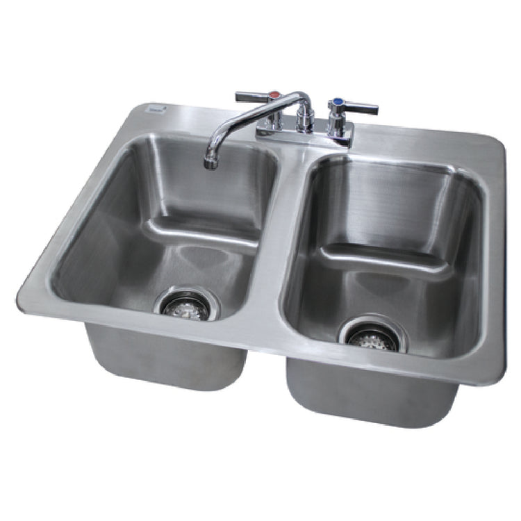 The Advance Tabco DI-2-10 Drop-In Sink is a meticulously designed two-compartment unit, measuring 10 inches wide by 14 inches front-to-back, with each bowl boasting a 10-inch depth. This configuration provides ample space for various cleaning tasks, catering to the needs of food service establishments seeking efficiency and reliability. Crafted from high-quality 18-gauge 304 stainless steel, this sink ensures durability and resistance to corrosion, making it a long-lasting investment for busy commercial kitchens. The deck-mounted 8-inch swing spout faucet enhances its practicality by allowing for flexible water direction, accommodating a range of washing requirements. Additionally, the included basket drain facilitates effective water disposal, maintaining a clean and hygienic work environment. The Advance Tabco DI-2-10 Drop-In Sink is an essential component for restaurants, cafes, and other food service operations that demand robust performance and ease of maintenance. Its precise dimensions and reliable construction underscore its suitability for varied applications within the food industry, promoting operational efficiency and sanitation.