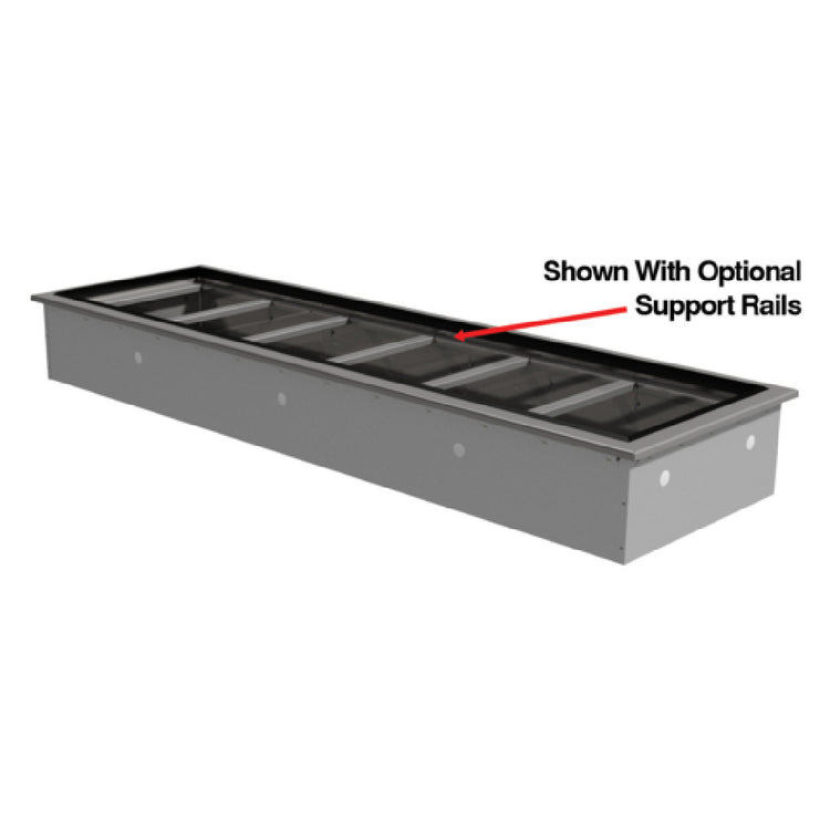 The Advance Tabco DICP-6 Cold Food Well Unit Drop-in Ice Cooled is a meticulously designed piece of equipment, ideal for food service operations requiring efficient cold storage. This unit measures 87-1/2"W x 26-3/4"D x 12-15/16"H overall, with a cutout size of 86-1/8"W x 25-1/2"D, making it a versatile choice for various counter configurations. It features a 9" deep well that can accommodate up to six 12" x 20" pan inserts, each up to 6-1/4" deep, with additional space below for ice, ensuring optimal cooling and display of chilled items. The self-rimming top is constructed from 18/304 stainless steel, providing durability and a sleek finish, while the black polyethylene thermal breaker enhances its insulation properties. The bin is made from 20/300 series stainless steel, and the exterior is crafted from 20 gauge galvanized steel, ensuring long-lasting performance in demanding environments. With a 1" drain for easy water removal and NSF certification, the Advance Tabco DICP-6 supports high standards of sanitation and functionality. This cold food well unit is perfect for businesses such as hotels, catering services, and restaurants that prioritize flexible and reliable cold storage solutions.