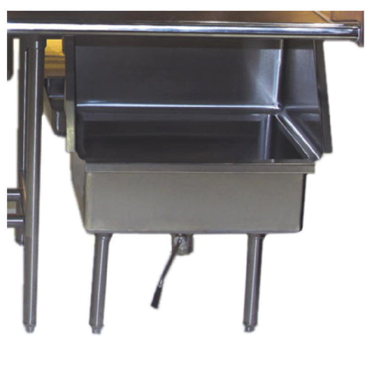 The Advance Tabco DTA-82 Dump Sink is a specialized fixture engineered for seamless integration under dish tables, addressing the specific needs of commercial kitchen operations. Featuring a meticulously crafted bowl dimension of 15 inches by 20 inches by 8 inches, the sink is designed to efficiently handle the demands of a busy kitchen environment. The innovative design mandates that the sink be mounted to the underside of a dish table, providing a streamlined workflow. It is uniquely supported by legs that extend to the floor, ensuring stability and balance during operation. This model is factory-prepared for field installation only, highlighting its role as a customizable component tailored to individual kitchen setups. The Advance Tabco DTA-82 serves diverse market segments within the hospitality and food service industries, ranging from restaurants to hotels, where efficiency and functional integration are paramount. Its robust construction and practical dimensions create a reliable utility solution that enhances the operational capabilities of a dishwashing station, making it an indispensable asset for establishments aiming to optimize their kitchen efficiency.