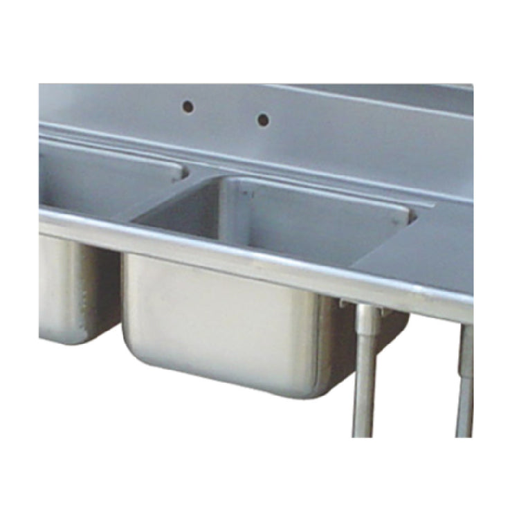 The Advance Tabco DTA-99B Sink Bowl is a precisely engineered kitchen equipment piece, measuring 20 inches in width, 20 inches in depth, and 12 inches in depth for an optimal capacity suited to a variety of culinary environments. This sink bowl is expertly welded into the top, enhancing its structural integrity and providing a seamless transition between the bowl and the countertop. The design ensures that each unit can be customized to suit specific kitchen layouts, as customers must specify the sink location during the ordering process. This feature makes it an invaluable asset for commercial kitchens, food service establishments, and industrial settings where custom configurations are paramount. By focusing on the critical dimensions and construction details, the Advance Tabco DTA-99B stands out for its versatility and practical applications in diverse market segments within the hospitality and culinary industries. Whether utilized in a bustling restaurant kitchen or a high-capacity food processing facility, this sink bowl's robust and adaptable design ensures it meets the demanding needs of professional environments while maintaining efficient space usage and ease of installation.