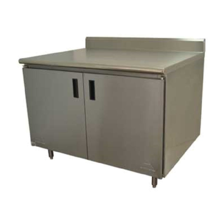 The Advance Tabco ECK-SS-246-X Special Value Economy Work Table is a versatile and practical addition to any commercial kitchen, offering a spacious 72-inch width and 24-inch depth. Crafted with a durable 16-gauge 304 stainless steel top, it ensures long-lasting durability and robust resistance to corrosion. A 5-inch high backsplash is integrated into the design, safeguarding walls from potential spills and splashes. The work table features a convenient cabinet base equipped with sliding doors, providing easy access to essential supplies and optimizing storage space. Supporting the structure are sturdy stainless steel legs, each fitted with adjustable hex feet to maintain a level working surface on uneven floors. The Advance Tabco ECK-SS-246-X is NSF certified, guaranteeing compliance with rigorous public health and safety standards. This work table is particularly well-suited for restaurants, cafes, and catering businesses that require reliable and efficient workspace solutions. Its thoughtful design and high-quality materials make it a valuable asset for food preparation and storage in professional settings. Whether for prep stations or storage purposes, the Advance Tabco ECK-SS-246-X stands out as a reliable choice for diverse commercial environments.