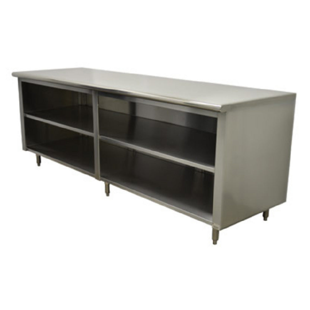 The Advance Tabco EEB-SS-248M-X Special Value Economy Work Table is a versatile addition to any professional kitchen or workspace, offering a substantial 96-inch width and 24-inch depth. This work table features an open front cabinet base complemented by a mid-shelf, providing ample storage and accessibility for various kitchen tools and supplies. Constructed from robust 16-gauge 304 stainless steel, the tabletop ensures durability and resistance to corrosion, making it ideal for demanding culinary environments. The stainless steel legs, equipped with adjustable hex feet, allow for customization to accommodate uneven floor surfaces, ensuring stability during use. This work table is NSF certified, underscoring its compliance with strict public health and safety standards, which is crucial for maintaining hygiene in food service operations. The economical design of the Advance Tabco EEB-SS-248M-X makes it a cost-effective solution for commercial kitchens, catering establishments, and food preparation areas that require reliable, durable work surfaces without compromising on quality or functionality.