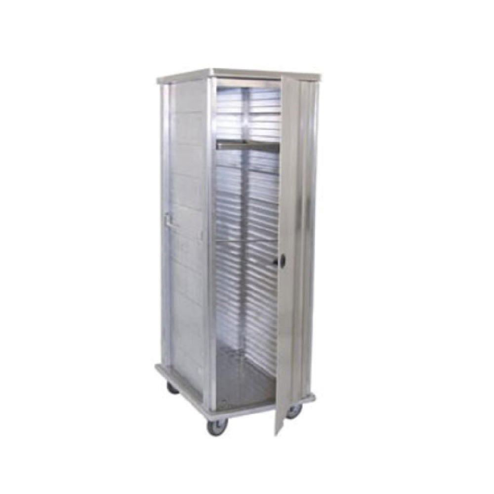 The Advance Tabco EPC-40-X Special Value Enclosed Pan Cabinet is a full-height, robust storage solution engineered for various professional kitchen environments, boasting a 37-pan capacity that caters to high-volume operations. This front-load cabinet is expertly crafted from 14-gauge aluminum, a testament to its durable, welded construction that withstands the rigors of commercial use. Equipped with enclosed extrusions, it ensures added protection and organization for stored pans. The design incorporates a low-profile manual door latch, enhancing accessibility and security while maintaining a sleek appearance. For ease of mobility, the cabinet is set on 5-inch poly plate casters, with two casters featuring brakes to secure the unit in place when needed. This combination of mobility and stability makes it ideal for dynamic kitchen layouts where space optimization is key. The Advance Tabco EPC-40-X is perfectly suited for various segment markets within the food service industry, providing a reliable and efficient storage solution that supports both the operational and logistical demands of culinary professionals.