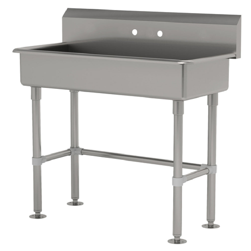 The Advance Tabco FC-FM-1-ADA Service Sink Splash Mount Faucet Provision With Stainless Steel Legs And Flanged Feet is engineered for superior functionality and compliance. This service sink is meticulously crafted with a 40-W x 19-3/4-D x 42-1/2-H overall dimension, featuring a 14-inch front-to-back by 5-inch deep bowl, making it versatile for various service environments. Its 8-1/2-inch high backsplash is adeptly punched to accommodate a set of faucet holes 8 inches on center. Enhancing its practical design, the sink includes a 1-1/2-inch basket drain. Constructed from 16-gauge 304 stainless steel, it promises durability and resistance to corrosion, ensuring longevity in demanding settings. The stainless steel legs provide steadfast support, complemented by flanged feet for added stability. The ADA compliance signifies its dedication to accessibility standards, broadening its applicability in diverse institutional and commercial spaces. Additionally, the NSF certification underscores its adherence to public health and safety standards, making it a trustworthy choice for environments that prioritize hygiene and accessibility. This service sink is an exemplary blend of practicality, compliance, and robust construction, ideally suited for industries requiring reliable and accessible washing solutions.