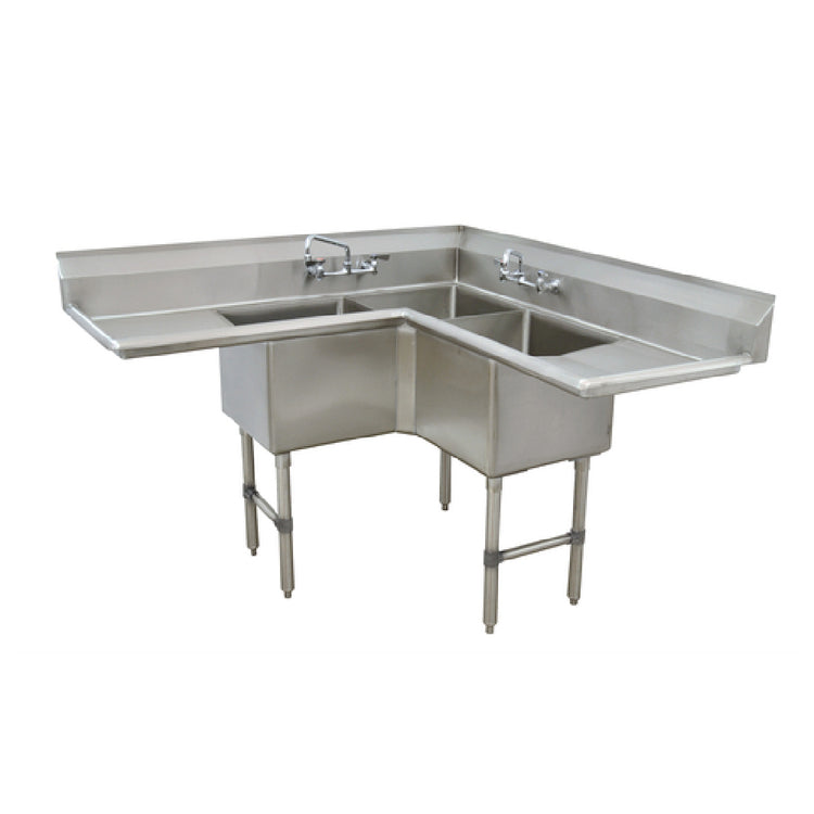Advance Tabco FC-K6-18D Fabricated NSF Corner Sink 3-compartment L Shaped 18" Right & Left Drainboards