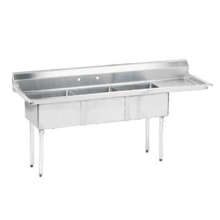 Advance Tabco FE-3-1515-15R-X Special Value Fabricated Sink 3-compartment 15" Right Drainboard