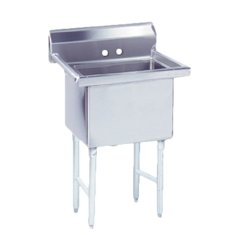 The Advance Tabco FS-1-1620 Fabricated Sink 1-compartment No Drainboards is a highly specialized unit designed for commercial kitchens that demand durability and functionality. This sink features a single compartment with a bowl size of 16" x 20" x 14" deep, catering to diverse washing and prep needs. Constructed from 14 gauge 304 stainless steel, it ensures long-lasting performance and resistance to corrosion. The sink incorporates a tile edge splash and rolled edge, enhancing both its usability and safety. With 8" on-center faucet holes, it accommodates a variety of faucet fixtures. The stainless steel legs are equipped with adjustable side cross-bracing, providing stability and support, while 1" adjustable stainless steel bullet feet allow for level installation on uneven surfaces. Its overall dimensions are 26" front-to-back by 21" left-to-right, fitting efficiently into compact spaces without sacrificing capacity. The NSF certification affirms its compliance with rigorous public health and safety standards. This versatile sink is particularly suited for environments requiring high hygiene standards and robust materials, like restaurants, catering services, and food processing facilities, delivering a reliable solution for daily operations.
