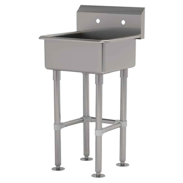 The Advance Tabco FS-FM-2721 Service Sink Splash Mount Faucet Provision With Stainless Steel Legs And Flanged Feet is a pragmatic solution designed for professional environments requiring durable and hygienic equipment. This service sink features a compact yet efficient bowl size of 24 inches in width, 18 inches in depth, and a 12-inch deep bowl, providing ample space for various cleaning tasks. Crafted from 14-gauge stainless steel, it ensures long-lasting performance and resistance to corrosion. The 8-1/2-inch backsplash offers additional protection against water splashes, keeping surrounding areas clean. The sink is equipped with 8-inch faucet holes on center, allowing for straightforward faucet installation. Its design includes a 3-1/2-inch rear basket drain to facilitate efficient water drainage. The stainless steel legs and flanged feet provide stability and support, essential for high-traffic or heavy-duty usage. The NSF certification underscores its compliance with rigorous health and safety standards, making it a reliable choice for commercial kitchens, healthcare facilities, and industrial settings. This service sink’s robust construction and thoughtful features ensure it meets the diverse demands of different segment markets within the industry, offering exceptional utility and durability for all users.