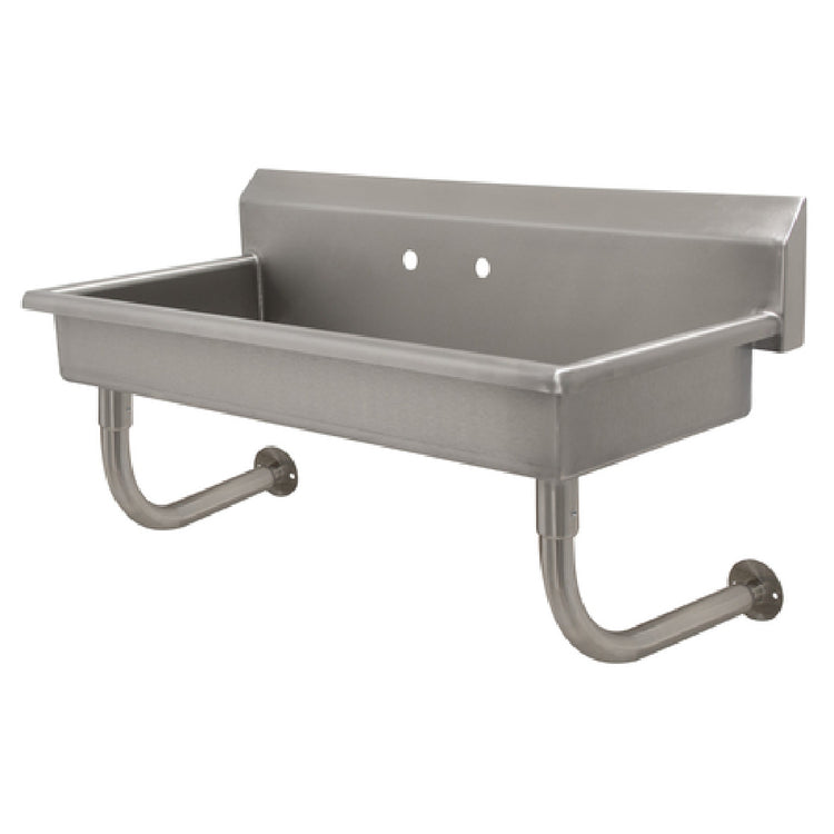 The Advance Tabco FS-WM-1-ADA Service Sink Splash Mount Faucet Provision Wall Mounted is a meticulously crafted piece tailored for practical and compliant installations. Measuring 40 inches in width, 19-1/2 inches in depth, and standing 25-1/2 inches tall overall, this service sink provides ample working space, with a bowl size of 37 inches wide, 16 inches deep, and 5 inches deep. The 8-1/2 inch high backsplash is specifically designed to minimize water splashes and maintain cleanliness. Engineered for hassle-free faucet installation, the unit comes punched with a set of faucet holes 8 inches on center. Its construction of 14 gauge 304 stainless steel ensures durability and resistance to corrosion, while the tubular stainless steel wall supports enhance stability. The inclusion of a 3-1/2 inch rear basket drain facilitates efficient water drainage. Certified by NSF standards and compliant with ADA requirements, this service sink is an ideal choice for facilities prioritizing accessibility and hygiene. Its robust design and practical features make it a valuable asset for any commercial kitchen or industrial space, ensuring dependable performance and long-lasting utility.