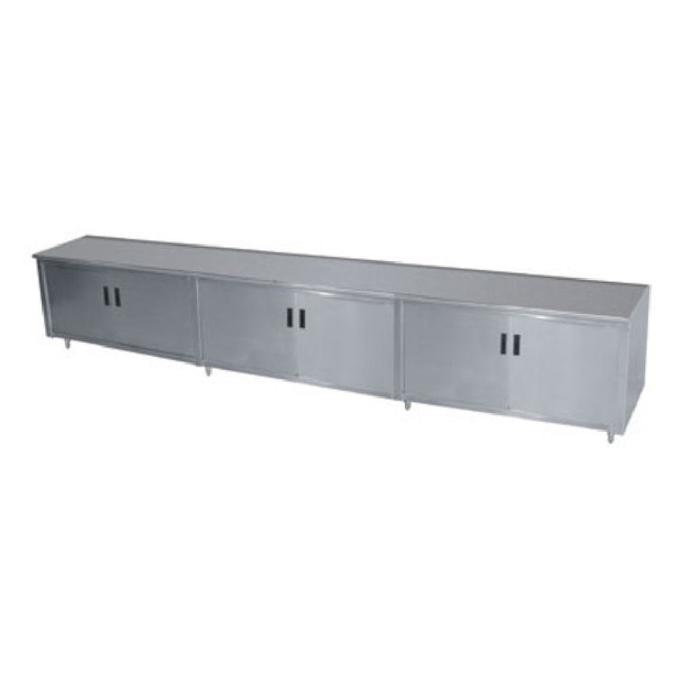 The Advance Tabco HB-SS-3012 Work Table 144"W x 30"D Cabinet Base With Hinged Doors is a versatile and durable addition to any professional kitchen or industrial workspace. Constructed with a 14-gauge 304 stainless steel top, this work table ensures superior strength and corrosion resistance, making it well-suited for demanding environments. The generous dimensions of 144 inches in width and 30 inches in depth provide ample workspace for a range of culinary or industrial tasks, from food preparation to equipment assembly. The cabinet base, outfitted with hinged doors, offers convenient storage solutions, facilitating organized access to essential tools and materials. Supported by stainless steel legs, this work table features adjustable hex feet, allowing for stability on uneven surfaces, thus ensuring a secure and level work area. As an NSF-certified product, the Advance Tabco HB-SS-3012 adheres to rigorous public health and safety standards, making it a reliable choice for businesses that prioritize compliance and quality. This work table is designed to meet the diverse needs of various industry segments, providing functionality and durability for commercial kitchens, laboratories, and manufacturing facilities alike.