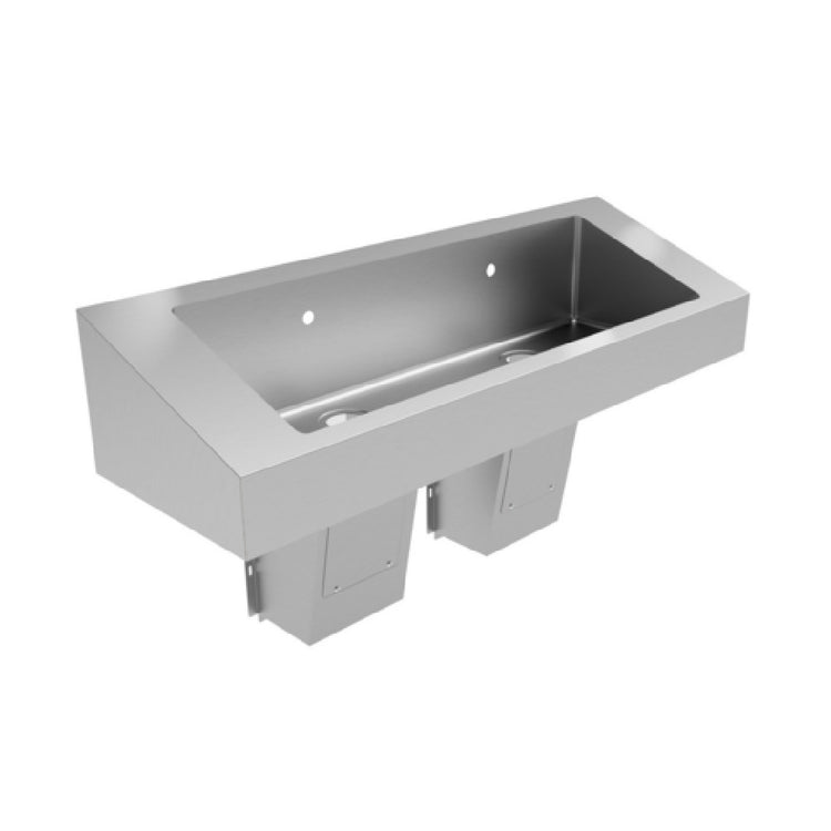 The Advance Tabco HSS-ADA-2 Hand Sink - wall mounted scrub sink design - is engineered to meet diverse industry requirements, providing a practical solution for maintaining hygiene in various professional settings. Measuring 60 inches from left to right and 19 inches front to back, this hand sink features a single scrub station, making it suitable for compact spaces that require efficient sanitation facilities. It is prepared for two single holes to accommodate a splash mount faucet, though the faucet itself is not included, allowing for customization based on specific needs. The sink's concealed drain with a removable front access panel ensures ease of maintenance and enhanced cleanliness. Constructed from durable stainless steel, the HSS-ADA-2 includes two rear center drains equipped with a strainer plate, effectively managing water flow and debris collection. Importantly, it is ADA compliant, ensuring accessibility and convenience for all users. This product's robust design and thoughtful features make it a valuable asset across multiple markets, including healthcare, food service, and industrial environments, where adherence to stringent hygiene standards is paramount.