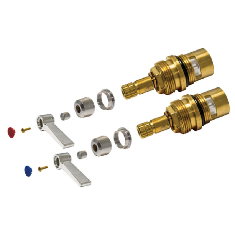 The Advance Tabco K-00B Repair Kit - Set of (2) Replacement Cartridges for K-1 is a specialized product designed to offer seamless compatibility with a wide range of Advance Tabco faucets. This repair kit includes two replacement cartridges that are specifically engineered to fit faucet models such as K-1, K-11, K-50, K-51, K-52, K-53, K-56, K-101, K-124, K-160, K-208, and K-240. It is tailored for faucets supplied after November 2015, characterized by hot and cold color rings that do not feature exposed screw heads. This makes it an ideal solution for maintaining and repairing modern faucet systems without the need for visible screws. If customers have older faucet models supplied until mid-2016 with exposed screw heads, the K-00 repair kit is recommended instead. By providing precise compatibility and addressing specific faucet designs, the Advance Tabco K-00B Repair Kit ensures reliable and effective performance across various settings, making it a valuable asset for both commercial and residential applications in the plumbing industry.