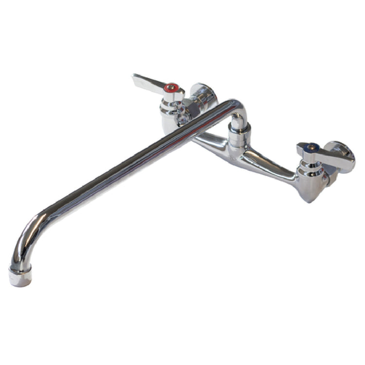 The Advance Tabco K-105 Faucet Heavy Duty 8" OC is a meticulously engineered plumbing fixture designed for both durability and functionality, making it an ideal choice for a range of commercial kitchen settings. This heavy-duty faucet is splash mounted, ensuring a secure and stable installation that can withstand the demands of busy environments. A standout feature is its 14" swing spout, which provides ample reach and flexibility, allowing for efficient multitasking and ease of use across various applications. The faucet is configured with an 8-inch on-center (OC) setup, promoting compatibility with standard commercial sink installations. Notably, the Advance Tabco K-105 Faucet is lead-free, aligning with health and safety regulations to ensure the well-being of users and compliance with industry standards. Its robust construction and practical design make it suitable for diverse market segments, such as restaurants, cafeterias, and institutional kitchens, where reliability and performance are paramount. By integrating precise technical specifications, this faucet demonstrates a commitment to quality and user-centered design, offering a practical solution tailored to meet the rigorous demands of professional culinary environments.