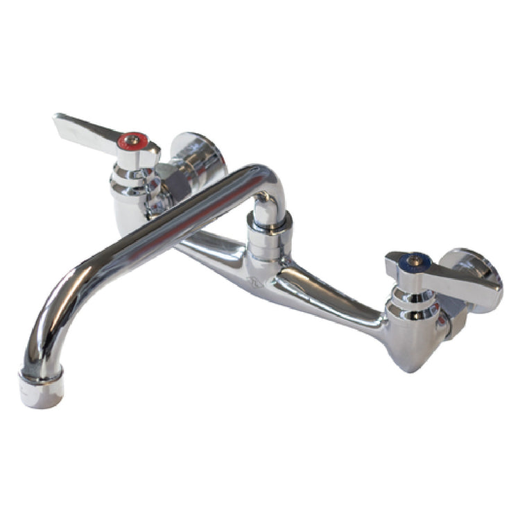 The Advance Tabco K-1118 Faucet Heavy Duty 8" OC is a meticulously engineered plumbing fixture designed for durability and functionality, making it ideal for demanding environments. This faucet boasts an 8-inch on-center splash-mounted design, providing a seamless integration into commercial and industrial sinks. The 8-inch swing spout enhances its versatility, allowing for a wider range of motion and accessibility. Crafted from chrome plated brass, the faucet ensures long-lasting resilience and a sleek, polished appearance, all while being lead-free to meet stringent safety standards. The colored hot and cold indexes offer intuitive operation, while the 1/4 turn wedge handles provide precise control over water flow, contributing to enhanced user convenience and efficiency. This faucet is particularly suited for a variety of settings including restaurants, foodservice operations, and industrial kitchens, where reliability and ease of maintenance are paramount. Its heavy-duty construction is engineered to withstand the rigors of daily high-volume use, ensuring that it remains a reliable component in any professional setting. Through its combination of robust design and practical features, the Advance Tabco K-1118 Faucet stands out as a premier choice for professionals seeking uncompromising quality and performance in their plumbing fixtures.