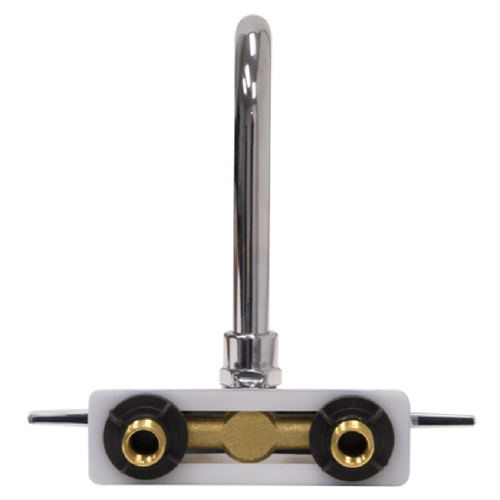 The Advance Tabco K-206 Faucet - heavy duty, splash mounted - is a specialized plumbing fixture designed for rigorous commercial environments. Featuring a 4-inch on-center (OC) configuration, this faucet is engineered for precision and durability. It is equipped with a 6-inch extended D spout, providing extended reach and flexibility, which is crucial for various industrial applications. The inclusion of wrist handles enhances operational ease, especially in settings where hands-free operation is preferred or required, such as in health care or food service industries. Notably, the K-206 model adheres to modern safety standards with its lead-free construction, ensuring it meets stringent health regulations. This faucet is particularly valued in markets that prioritize sustainability and user safety. The robust design and splash-mounted feature make the Advance Tabco K-206 an ideal choice for facilities that demand reliable performance and efficiency. Its construction and features cater to diverse segments, from restaurants to laboratories, underscoring its versatility and practicality in demanding environments. The combination of technical precision and safety compliance positions this faucet as a critical component for professional establishments seeking both quality and functionality in their plumbing systems.