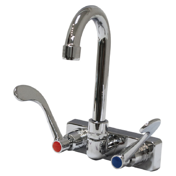 The Advance Tabco K-316 Faucet - 4" O.C Splash Mounted With 3-1/2" Gooseneck Spout & Wrist Handles (4" Long Blades) is a precision-engineered fixture designed for both functionality and compliance. With a splash-mounted design, it is specifically crafted for seamless integration in professional spaces, ensuring minimal water mess and maximum convenience. The 3-1/2" gooseneck spout provides an optimal arc for water flow, making it suitable for various washing and rinsing tasks, while the wrist handles, equipped with 4" long blades, are ergonomically designed for ease of use, minimizing hand strain during operation. This faucet is lead-free, aligning with health and safety standards, making it a reliable choice for commercial kitchens, laboratories, and healthcare facilities. Its compact 4" on-center configuration ensures it fits efficiently in spaces with specific installation requirements, catering to the needs of diverse industry segments such as food service, education, and medical sectors. The combination of durability, compliance, and user-focused design makes the Advance Tabco K-316 Faucet a valuable fixture for establishments seeking high performance and regulatory adherence in their plumbing installations.