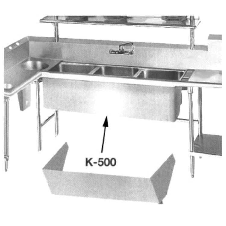 The Advance Tabco K-500 Apron to Cover Sink Bowls Stainless Steel is a specialized component crafted to enhance the functionality and aesthetic of sink units within various industry segments. This apron is designed to fit seamlessly over sink bowls, providing a sleek and professional finish. Constructed entirely from high-grade stainless steel, it boasts exceptional durability and resistance to corrosion, making it ideal for demanding environments such as commercial kitchens, laboratories, and other facilities requiring stringent hygiene standards. Each apron is tailored per sink, offering a customized solution that ensures precision and ease of installation. The stainless steel construction not only enhances the appearance but also contributes to long-term reliability, reducing maintenance requirements over time. The Advance Tabco K-500 Apron stands out in the market by offering a combination of elegance and functionality, meeting the diverse needs of professionals seeking quality and performance in their workspace. Its robust material and custom fit make it a preferred choice among industry professionals who prioritize both efficiency and aesthetics in their operational areas.