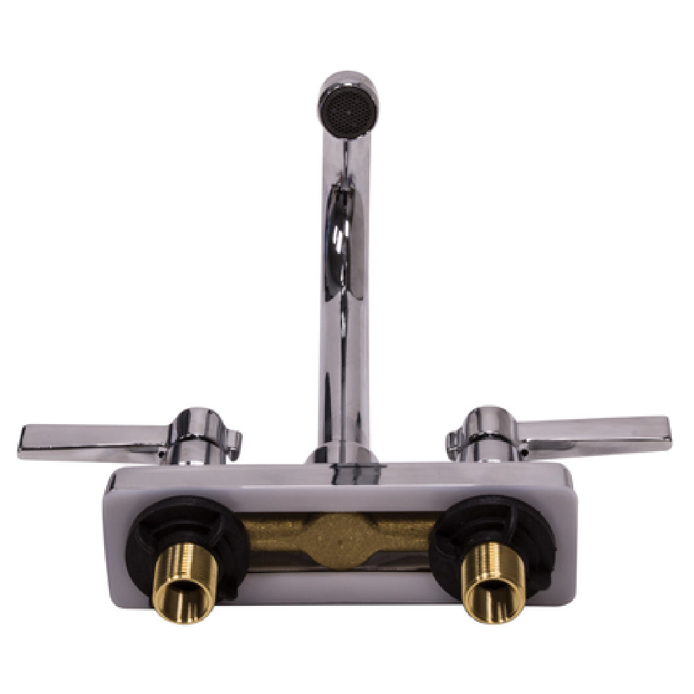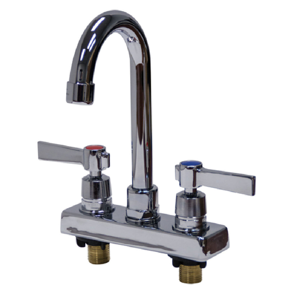 The Advance Tabco K-52 Faucet is a heavy-duty, deck-mounted fixture designed for robust performance in various industrial settings. With a 4" center-to-center (OC) configuration, this faucet is engineered to fit seamlessly into standard plumbing setups, ensuring compatibility and ease of installation. A notable feature of the K-52 is its 3-1/2" gooseneck spout, which provides ample clearance and versatility for diverse applications, from commercial kitchens to laboratory use. Constructed with lead-free materials, this faucet meets stringent safety and environmental standards, making it a reliable choice for health-conscious environments. The durable build of the Advance Tabco K-52 ensures long-term functionality, even under heavy usage, while maintaining an aesthetic appeal that complements professional spaces. Its technical specifications are tailored to meet the demands of various market segments, including food service, healthcare, and education sectors, where reliability and compliance with health standards are paramount. The Advance Tabco K-52 Faucet combines functionality with rigorous safety standards, making it a valuable addition to any setting that requires robust and reliable water dispensing solutions.