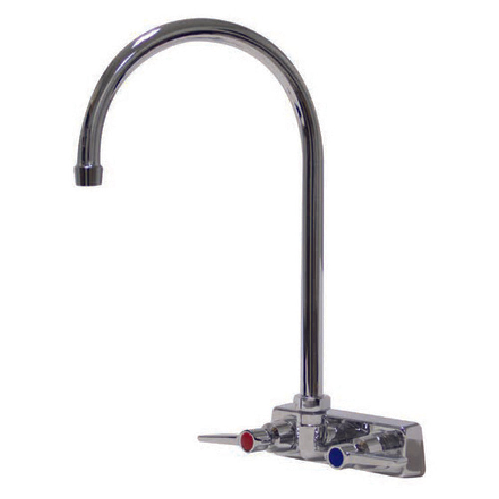 The Advance Tabco K-60 Faucet Heavy Duty 4" O.C is an exemplary addition to any commercial kitchen or laboratory setting, providing robust performance and durability. This faucet is meticulously engineered with a splash-mounted design, ensuring easy installation on compatible surfaces. The 4" on-center (O.C) configuration allows it to fit seamlessly into any standard sink setup, making it a versatile choice for various applications. Featuring an 8-1/2" gooseneck spout, the K-60 Faucet delivers a high arc that facilitates easy filling of pots and containers, enhancing efficiency and convenience in busy environments. The lead-free construction underscores its commitment to health and safety standards, making it suitable for use in environments where water quality is paramount. Designed for heavy-duty use, this faucet excels in high-demand settings, offering reliability and consistent performance. Its robust construction ensures longevity, reducing the need for frequent replacements and maintenance. The Advance Tabco K-60 Faucet is the ideal choice for industry professionals seeking a high-performance, health-conscious solution that meets stringent quality and functionality requirements.