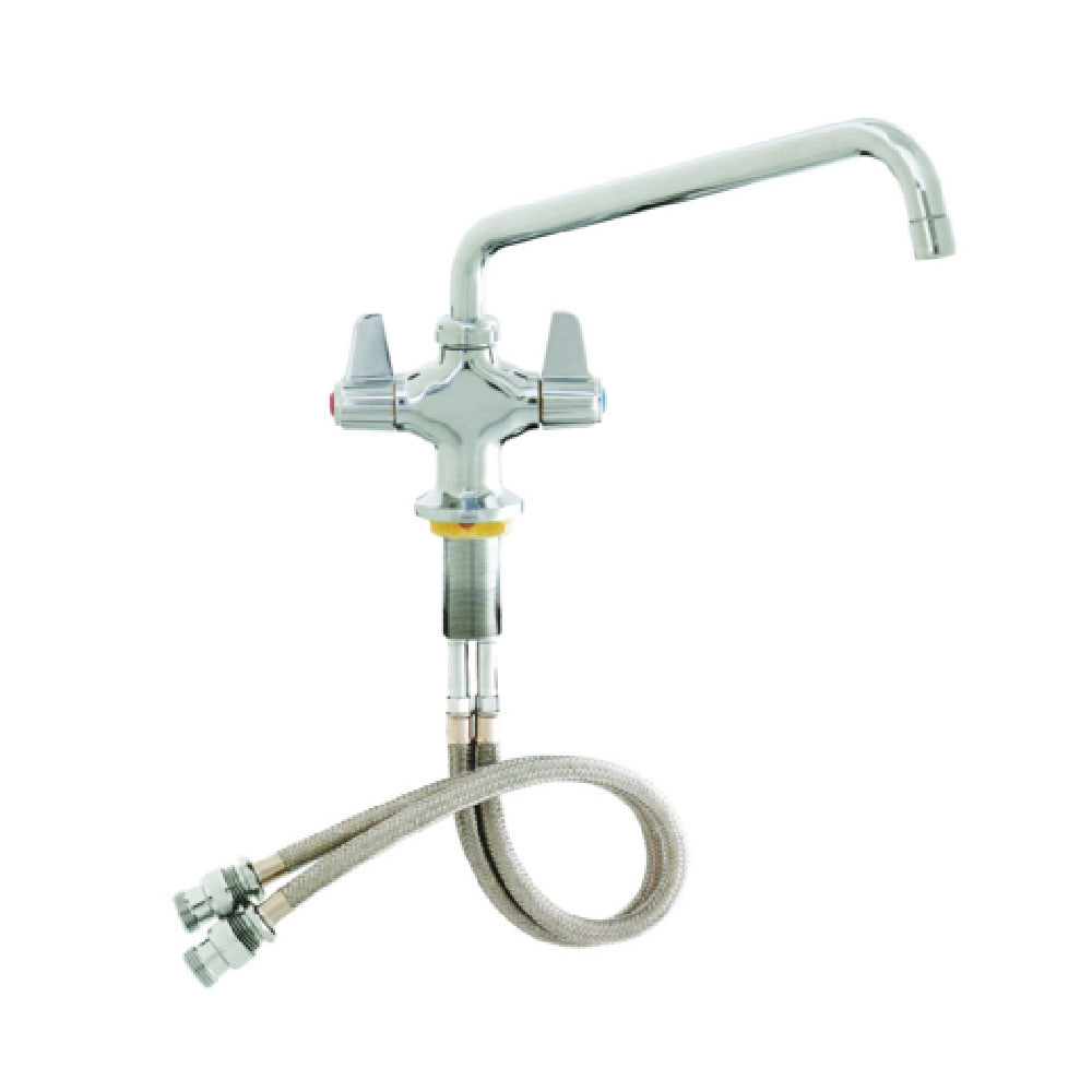 The Advance Tabco K-64 Faucet Heavy Duty Single Hole stands out as a reliable fixture for various industrial settings. Engineered for durability, this faucet is deck-mounted, providing a stable and secure installation. It features an 8-inch swing spout, allowing for versatile water delivery and easy maneuverability. Crafted to meet rigorous industry standards, the K-64 is lead-free, ensuring safe and clean water flow, which is crucial for environments where water quality is paramount. Its single-hole design simplifies installation, reducing the potential for leaks and maintenance issues. This faucet caters to a broad spectrum of markets, from commercial kitchens to laboratory settings, where robust and long-lasting fixtures are essential. Its heavy-duty construction is tailored to withstand the demands of high-usage environments, ensuring a long service life. By incorporating these technical features, the Advance Tabco K-64 Faucet presents itself as a dependable choice for professionals seeking a balance of performance and safety.