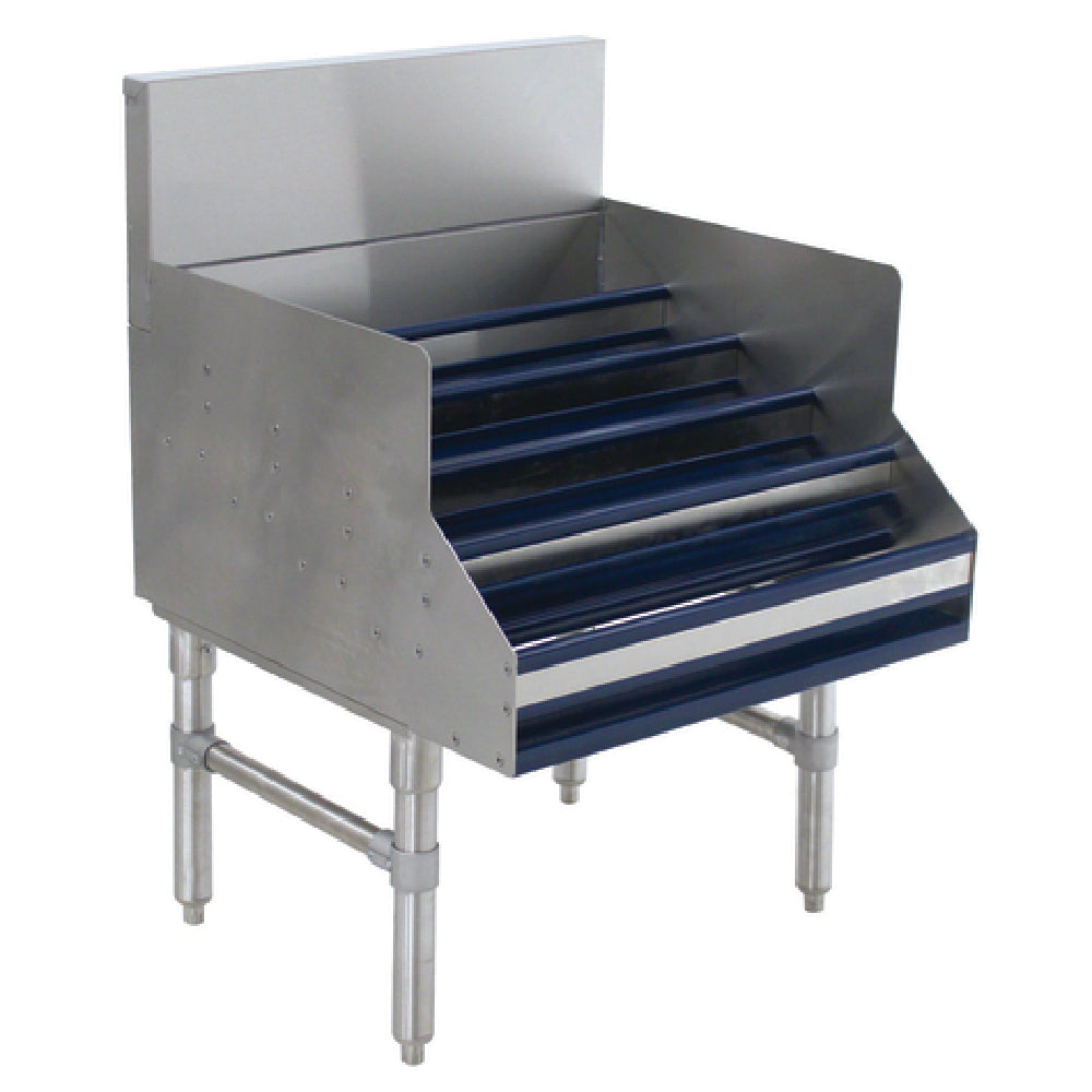 The Advance Tabco PLD-2530 Prestige Liquor Bottle Display Unit is designed to showcase an impressive selection of spirits with sophistication and functionality. Featuring five steps, this unit measures 30 inches in width, 25 inches in depth, and 36 inches in height, providing ample space for approximately 35 liquor bottles. It includes a 7-inch backsplash, which helps maintain cleanliness and prevents spillage or bottle movement. The display is constructed entirely of high-quality stainless steel, offering durability and a sleek, modern aesthetic that complements any bar setting. Its stainless steel legs are robust, and the adjustable bullet feet ensure stability on uneven surfaces. Engineered to meet NSF standards, this unit assures compliance with health and safety regulations, making it a reliable choice for commercial environments. The Advance Tabco PLD-2530 is particularly suited for upscale bars, restaurants, and clubs seeking to enhance their presentation while maintaining practicality and ease of access to their premium selections. Its combination of size, capacity, and construction quality makes it a versatile asset across different market segments within the hospitality industry, where both style and functionality are paramount.