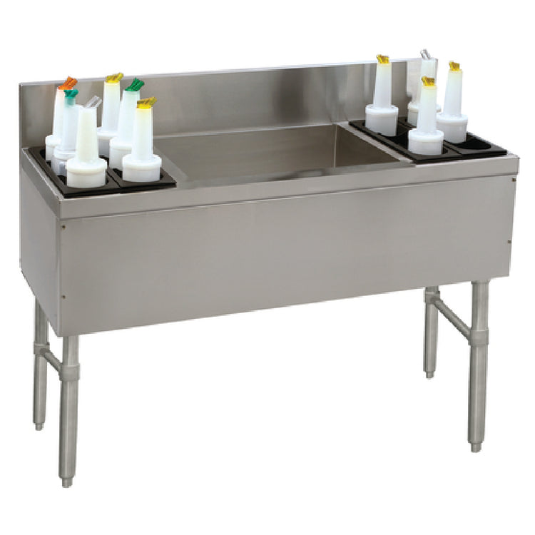 The Advance Tabco PRC-19-60LR Prestige Ice Chest is a meticulously designed unit measuring 60"W x 20"D x 36"H, equipped with a 7"H backsplash, perfect for commercial environments that demand efficiency and durability. It features deep bins with a depth of 10-1/6", capable of holding 32/108/32 lbs, making it suitable for diverse storage needs. This ice chest includes bottle storage racks on both the left and right sides, optimizing space for beverage services. Constructed from 20-gauge 300 series stainless steel, it ensures longevity and resistance to wear, while the foam insulation maintains the desired temperature. The inclusion of stainless steel legs with adjustable bullet feet offers stability and customization to suit different workspaces. Additionally, being NSF certified, the Prestige Ice Chest meets stringent hygiene and safety standards, making it an ideal choice for various segments within the food and beverage industry, including bars, restaurants, and catering services. Its robust construction and thoughtful design make it an invaluable asset for professionals seeking reliability and efficiency in their operations.