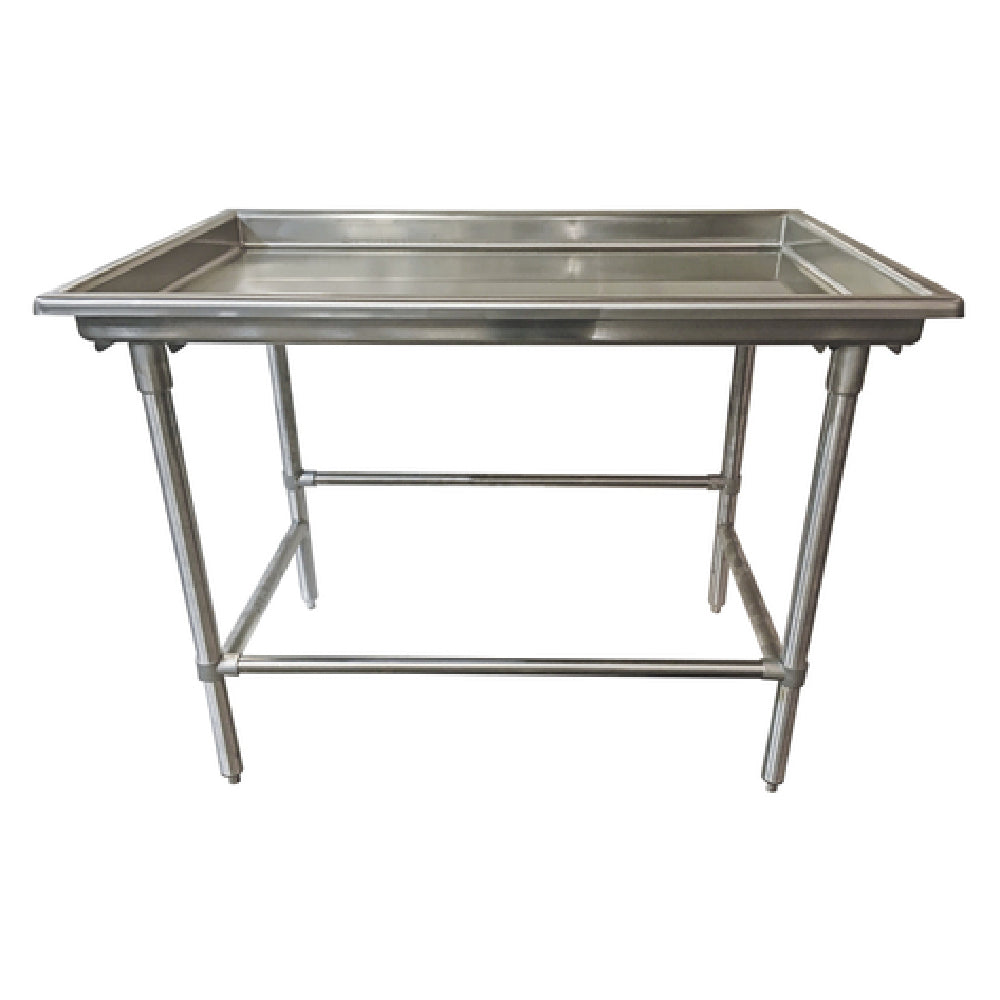The Advance Tabco SR-60 Sorting Table with a 3-inch raised edge and 30-inch wide top stands out as a versatile and practical addition to any commercial kitchen or industrial setting. With its expansive 60-inch length, this sorting table is constructed from durable 16-gauge 304 stainless steel, providing a robust and corrosion-resistant work surface that is ideal for sorting, assembly, and preparation tasks. The raised edge design effectively prevents spillage, maintaining a clean and efficient workspace. This table is equipped with crossrails, strengthening the overall structure and offering additional support for heavy-duty use. Notably, the absence of a splash guard enhances accessibility from all sides, making it suitable for fast-paced environments where quick handling is essential. Its stainless steel construction ensures longevity and ease of maintenance, which is crucial in environments that demand high standards of cleanliness and durability. The Advance Tabco SR-60 Sorting Table is excellently positioned to meet the needs of various segments within the food service and manufacturing industries, providing a reliable and spacious solution for efficient workflow management.