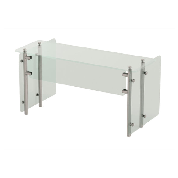 The Advance Tabco STFS-12-60 Food Shield Self Service With Fixed Front Glass is a meticulously designed product that caters to the niche market of food service industries requiring durable and efficient self-service setups. With dimensions of 60 inches in width, 12 inches in depth, and 18 inches in height, this food shield is engineered to accommodate a variety of service environments. It features a glass top shelf constructed from 3/8-inch thick heat-tempered glass, ensuring both durability and safety. The fixed front glass is also 3/8-inch thick, providing robust protection and a clear view of the food items on display. Additionally, the side panels are made from 1/4-inch thick glass and extend 18 inches deep, conforming to NSF requirements for health and safety standards. The top glass can support a maximum load of 100 pounds, evenly distributed, illustrating its capacity to handle substantial weight without compromising its structural integrity. This food shield is ideal for use in settings where maintaining hygiene and visibility is paramount, such as buffets, cafeterias, and self-service restaurants. Its thoughtful design and quality construction distinguish it as a reliable option for establishments seeking a balance of functionality and compliance with industry standards.