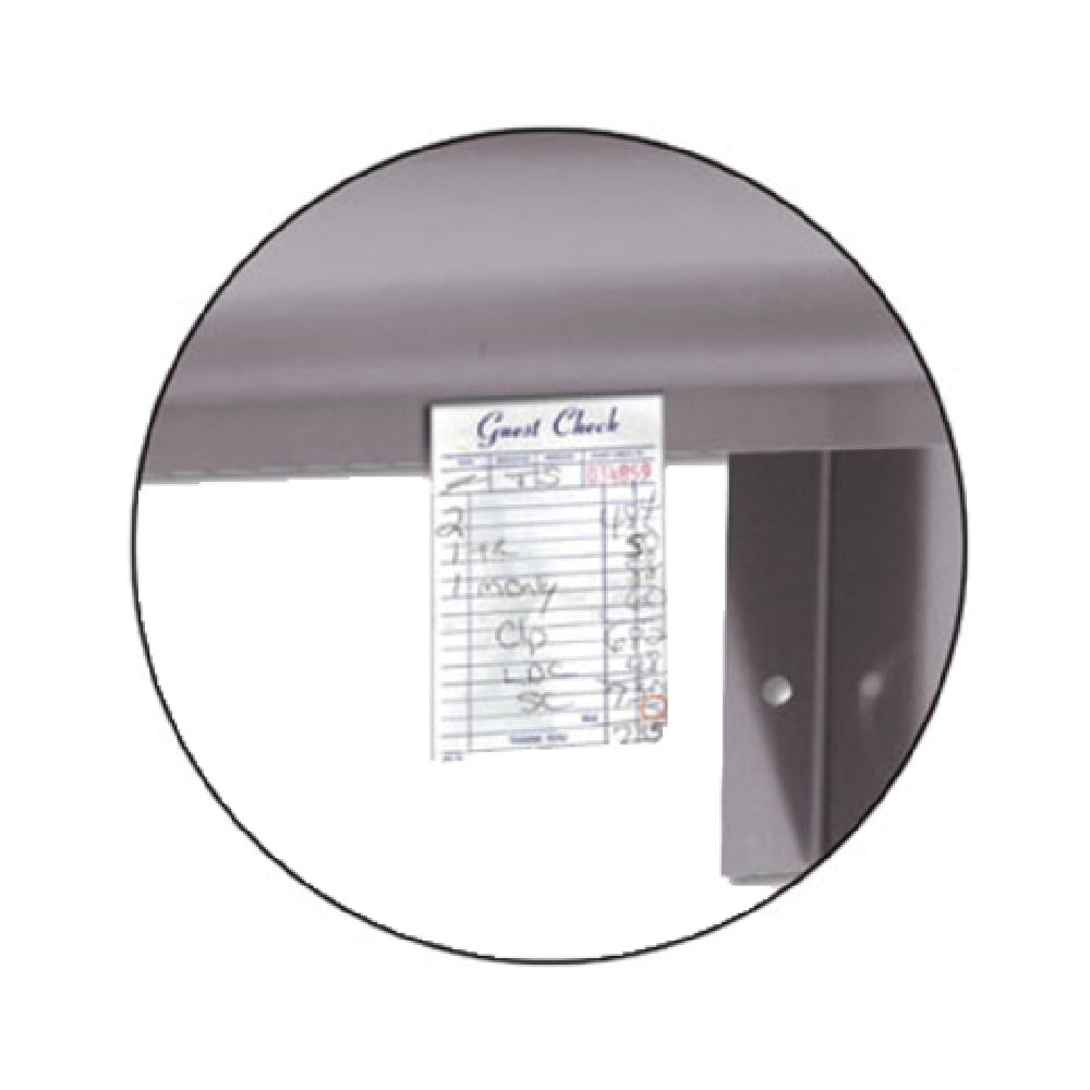 Advance Tabco TA-77 Check Minder Shelf Provision - per Linear Foot is a specialized component designed to enhance the functionality of commercial kitchen operations, specifically within the foodservice industry. Characterized by its modular design, this product is available per linear foot, allowing for customizable installations that fit the unique spatial requirements of various kitchen environments. The TA-77 Check Minder Shelf Provision is constructed to efficiently aid in the organization and management of order tickets, a critical aspect of streamlining workflow and ensuring accuracy in busy kitchen scenarios. Its robust build ensures durability and longevity, catering to high-volume establishments that demand reliable performance. This product is particularly valuable in fast-paced dining settings like restaurants and cafeterias, where the quick and orderly processing of customer orders is paramount. By providing a practical solution for check management, the Advance Tabco TA-77 enhances operational efficiency and supports the seamless delivery of service. Its adaptability and precision engineering make it a preferred choice for industry professionals seeking to optimize their kitchen operations. Utilizing this provision, establishments can maintain an orderly system that supports both the staff and customer experience, reflecting Advance Tabco's commitment to quality and innovation in kitchen equipment.