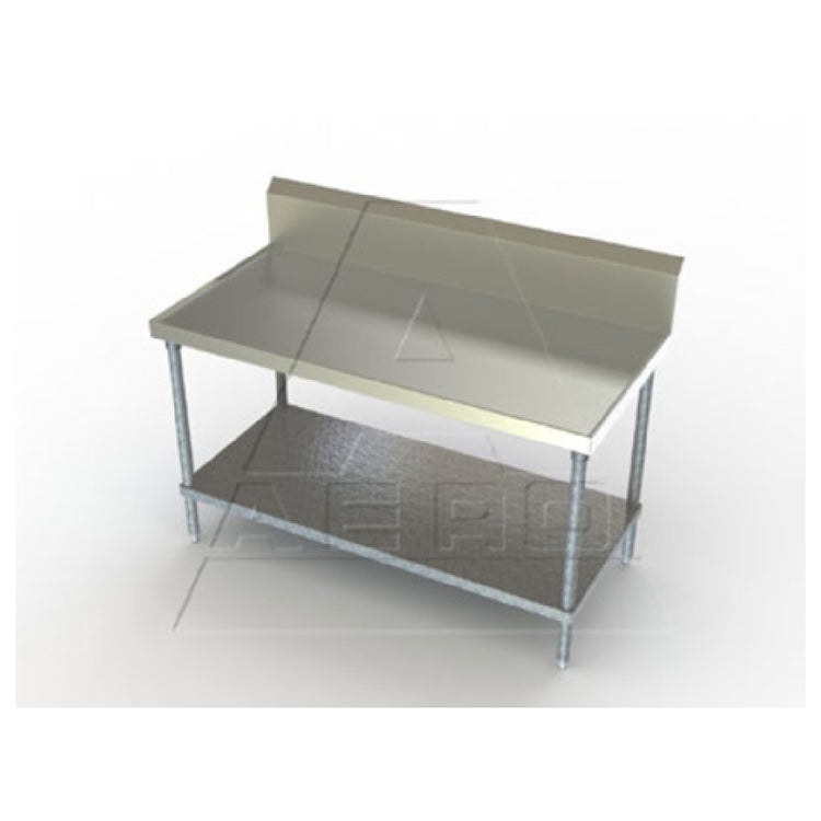 The AERO Manufacturing 1TGB-3660 Aerospec™ Work Table is meticulously engineered to meet the demands of diverse industrial environments. With dimensions of 60"W x 36"D x 45"H, this work table features a 14/304 stainless steel top, renowned for its durability and resistance to corrosion, making it an essential asset for food service and laboratory settings. The inclusion of (4) stainless steel box channels enhances structural integrity, providing a robust workspace capable of withstanding rigorous use. Designed with a 10"H backsplash and a 2" return, it effectively contains spills and maintains cleanliness, essential for maintaining hygiene standards. The table's marine edges on the front and sides prevent liquid overflow, adding to its functional design. A sound-deadened underside minimizes noise, enhancing the work environment. Additionally, it includes an 18-gauge galvanized steel adjustable undershelf, allowing for customizable storage solutions, and 16-gauge galvanized steel legs with adjustable plastic feet for stability on uneven surfaces. The Aero Hemmed Safety Edge™ adds a layer of safety, preventing sharp edges. Shipped knocked down (KD) for efficient transport and assembly, the work table is NSF certified, ensuring compliance with public health and safety standards. This work table is an invaluable addition to any professional workspace, combining practicality with superior craftsmanship.
