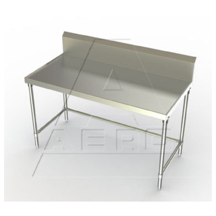 The AERO Manufacturing 1TSBX-36144 Aerospec™ Work Table is a premium work surface designed for versatility and durability in demanding industrial environments. Measuring 144 inches wide, 36 inches deep, and 45 inches high, this table features a 14-gauge, 304 stainless steel top that ensures longevity and resistance to corrosion. The work table is reinforced with four stainless steel box channels, enhancing its stability and load-bearing capacity, which is crucial for heavy-duty tasks in professional kitchens, laboratories, or manufacturing facilities. A 10-inch backsplash with a 2-inch return efficiently prevents spills and debris from falling behind the table, maintaining cleanliness. The table includes marine edges on the front and sides to contain spills on the surface, while the sound-deadened underside minimizes noise during use. Supported by 16-gauge, 304 stainless steel legs with side and rear cross bracing, the table offers exceptional sturdiness. Adjustable stainless steel feet ensure stability on uneven floors. The Aero Hemmed Safety Edge™ provides additional safety and comfort by eliminating sharp edges. This unit is shipped knocked down (KD) for cost-effective transportation and is NSF certified, signifying compliance with public health and safety standards. This work table is an optimal solution for various industry segments, combining function and durability in one comprehensive unit.