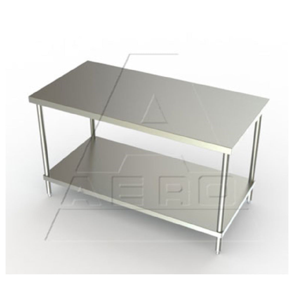 AERO Manufacturing 2TS-42144 Premium Work Table 144"W X 42"D X 35"H 14/304 Stainless Steel Top Reinforced With (4) Galvanized Steel Box Channels
