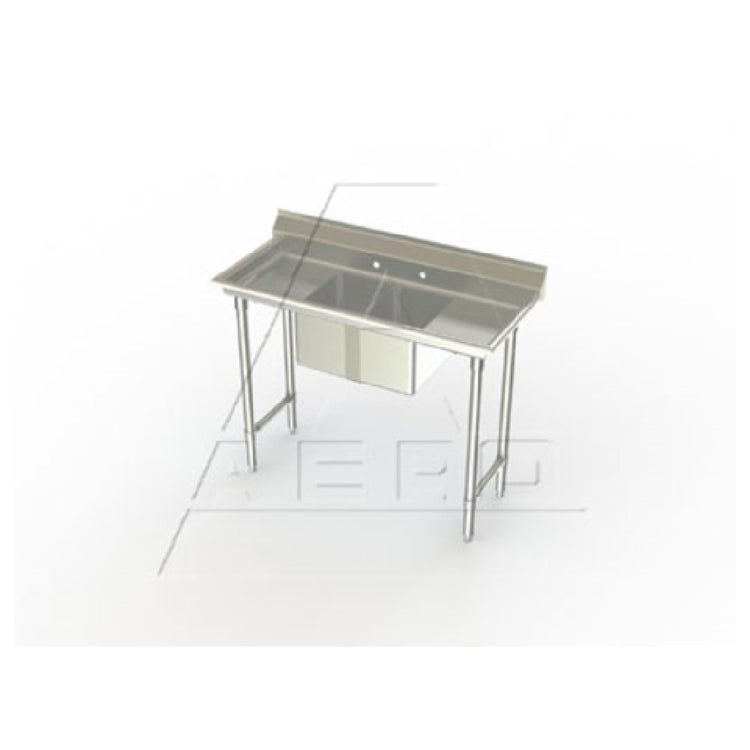 The AERO Manufacturing 3CS2-1410-11.5LR Convenience Store Sink is a meticulously designed two-compartment unit, measuring 48 inches in width, 20 inches in depth, and 40 inches in height, ideal for diverse applications in convenience stores. Crafted from high-quality 16/304 stainless steel, this sink guarantees durability and resistance to corrosion, making it a long-lasting investment for any store setup. Each compartment is fabricated to a size of 10 inches wide, 14 inches front-to-back, and 10 inches deep, providing ample space for efficient washing and rinsing tasks. The sink is equipped with 11-1/2 inch drainboards on both the left and right sides, facilitating seamless workflow and additional space for drying or prepping. A 7-inch high backsplash ensures cleanliness by preventing water spillage. The inclusion of fully welded stainless steel gussets and 16/304 stainless steel legs with side cross bracing enhances its structural robustness. Adjustable white metal feet allow for easy leveling on uneven surfaces, while the Aero Hemmed Safety Edge ensures user safety. The design is knock-down (KD) for convenient transport and installation. NSF certification attests to its compliance with health and safety standards, underscoring its suitability for professional environments.