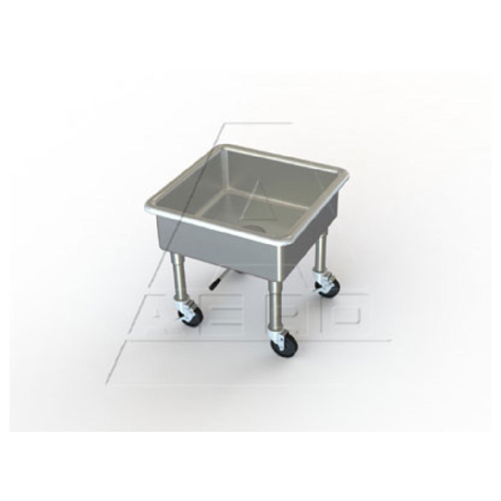 The AERO Manufacturing 3MS-2020-8 Soak Sink Portable 22" High is a meticulously engineered solution designed for flexible and efficient use in various professional settings. This portable soak sink features a sink compartment measuring 20" x 20" with an 8" depth, providing ample space for washing and soaking tasks. Constructed from 16-gauge 300 series stainless steel, the sink ensures durability and longevity in demanding environments. A standout feature includes the sink outlet fitted with a lever waste, offering convenient water drainage and management. The design incorporates a safety edge to enhance user safety during operation. The unit's fully welded plated gasket contributes to its robust construction, minimizing leaks and maintaining integrity. Supported by stainless steel legs, the sink is equipped with four swivel casters, two of which are fitted with brakes, ensuring both mobility and stability as needed. Standing at 22 inches high, it is crafted to cater to diverse market segments within industries that require portable, reliable, and high-quality soaking solutions, such as catering, healthcare, and hospitality. This sink combines practicality with premium material construction, making it a versatile and essential addition to any professional kitchen or workspace.