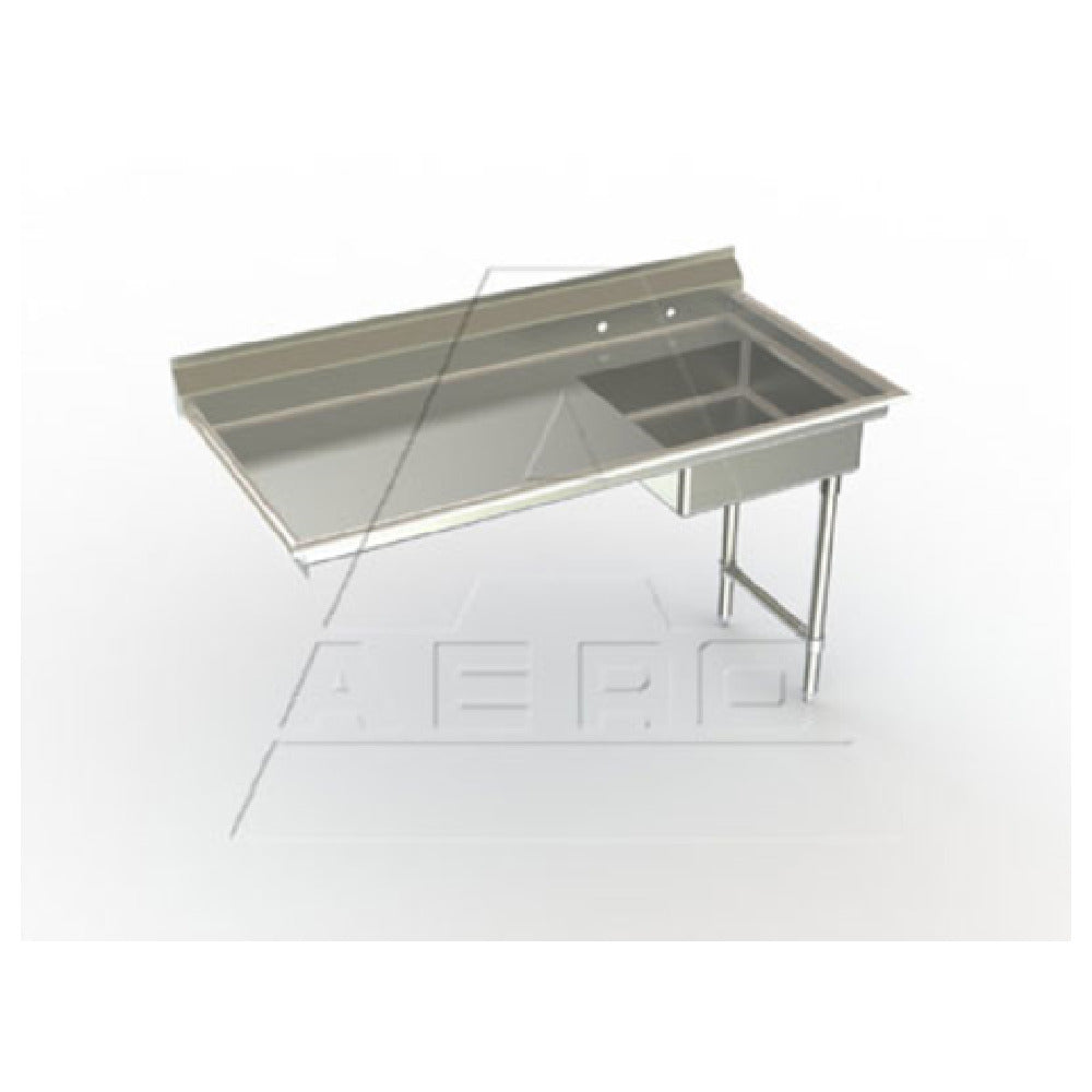 The AERO Manufacturing 3USD-R-48 Delux™ Soiled Dishtable Undercounter is an expertly engineered solution tailored for efficient dish management in commercial settings. With dimensions of 48 inches in width, 30 inches in depth, and 40 inches in height, this dishtable is designed to operate from right to left, optimizing workflow in busy kitchens. The unit's top is crafted from robust 16-gauge, 304 stainless steel, ensuring durability and corrosion resistance. Featuring a 7-inch backsplash with a 2-inch sanitary return, it is designed to maintain cleanliness and safety standards. The dishtable includes 8-inch on-center splash mount faucet holes, facilitating easy installation of faucets. A 20-inch wide by 20-inch front-to-back by 5-inch deep fabricated pre-rinse sink is integrated for versatile cleaning tasks. Fully welded stainless steel gussets provide additional structural support, complemented by 16-gauge, 304 stainless steel legs and side cross bracing. Adjustable white metal feet ensure stability on uneven surfaces. The Aero Hemmed Safety Edge™ enhances safety by minimizing sharp edges. This product is shipped in a knockdown (KD) form for convenient transport and assembly and holds NSF certification, affirming its compliance with public health standards, making it a valuable asset for various segments in the foodservice industry.