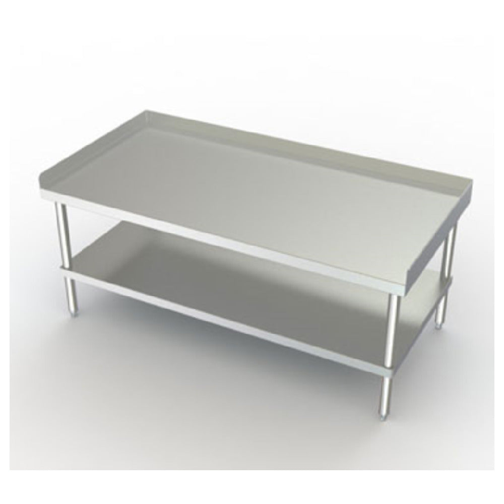 The AERO Manufacturing 4ES-3030 Economy Equipment Stand Open Base with Bottom Shelf is a meticulously designed unit, measuring 30"W x 30"D x 27-1/4"H. It is crafted with precision using 16 gauge 400 series stainless steel for its top, legs, and adjustable undershelf, ensuring durability and longevity. This equipment stand is equipped with a 2-1/4" splash on the sides and rear, providing an effective barrier against spills and maintaining a clean workspace. The inclusion of two steel box channels reinforces the structural integrity, making it ideal for supporting heavy equipment. Its open base design features an adjustable undershelf, offering flexible storage solutions for various equipment sizes. The adjustable white metal feet guarantee stability on uneven surfaces, while the sound-deadened construction reduces noise levels in busy environments. AERO Hemmed Safety Edge enhances safety by providing smooth edges, preventing accidental injuries. Shipped in a knocked-down (KD) state for ease of transport and assembly, this equipment stand is NSF certified, ensuring compliance with stringent health and safety standards. Suitable for diverse segment markets, this stand is a versatile and reliable choice for kitchens, laboratories, and industrial settings requiring sturdy and efficient equipment support.