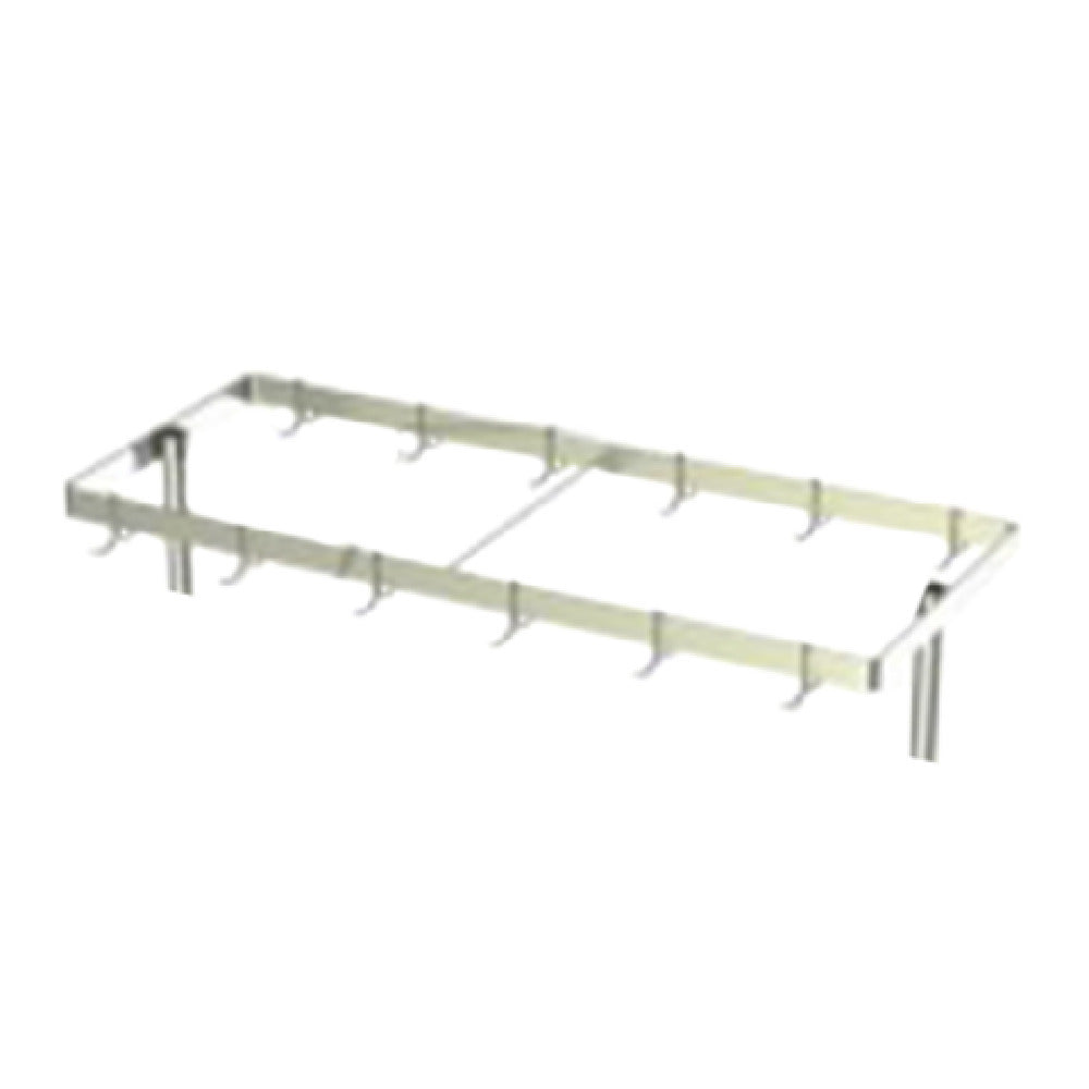 The AERO Manufacturing FPC-60 Pot Rack Table Mount At Center 60"W x 24"D x 49"H is a versatile and robust solution designed for efficient kitchen organization, perfect for commercial kitchens and catering services. This pot rack features an adjustable double-bar design with sturdy tubular table supports, providing reliable stability for heavy-duty use. Crafted from fully welded 3/16" x 2" 300 series stainless steel flat bar, it ensures longevity and resistance to rust and corrosion. The pot rack includes plated double-pronged pot hooks, with one hook per linear foot, offering ample space for hanging pots and pans in an accessible manner. Measuring 60 inches in width, 24 inches in depth, and 49 inches in height, this pot rack is designed to maximize storage while maintaining a compact footprint. The NSF certification guarantees that it meets strict standards for public health protection, making it a trusted choice for professional culinary environments. The AERO Manufacturing FPC-60 Pot Rack is a valuable addition to any industrial kitchen, providing a blend of durability, functionality, and compliance with safety standards, tailored to meet the demanding needs of the foodservice industry.