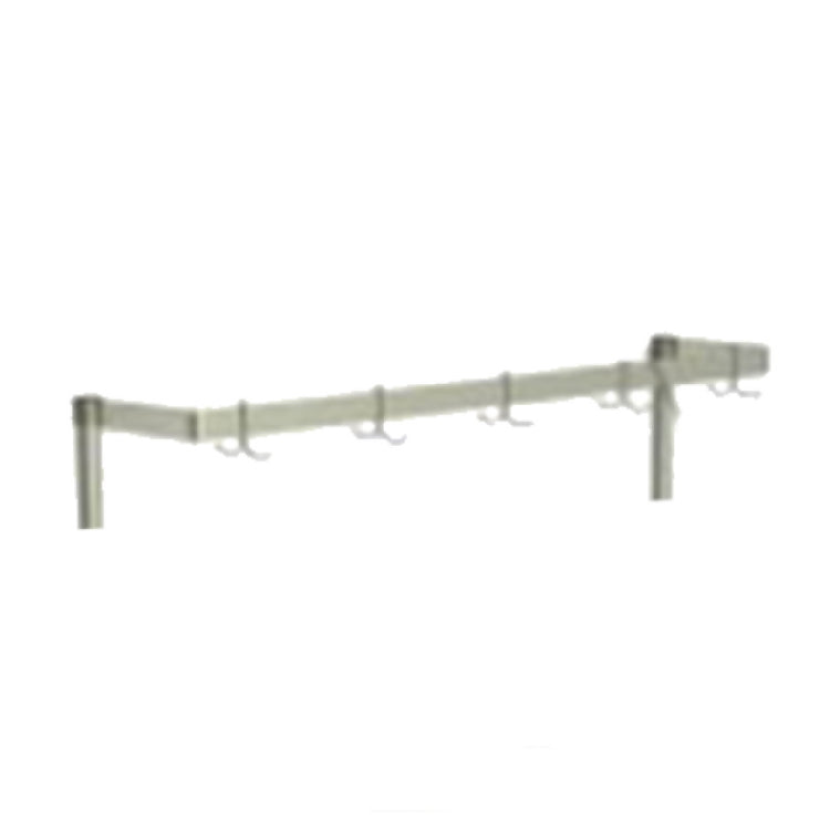 AERO Manufacturing FPS-36 Pot Rack Table Mount On Splash 36"W x 6"D x 39"H is a versatile solution designed to meet the needs of professional kitchens with efficiency and practicality. This pot rack features an adjustable single-bar design, allowing for customization based on specific culinary demands. Its tubular table supports provide stability and durability, ensuring reliable performance in busy environments. The rack is constructed with fully welded 3/16" x 2" 300 series stainless steel flat bar, offering robust construction and resistance to corrosion, making it ideal for high-usage commercial settings. This pot rack includes plated double-pronged pot hooks, providing one hook per linear foot, which enhances its functionality by allowing ample space for hanging pots and pans. Certified by NSF, it meets stringent public health and safety standards, making it a dependable choice for various food service operations. With dimensions of 36 inches in width, 6 inches in depth, and 39 inches in height, this pot rack is designed to maximize space and organization in kitchens, offering an essential addition to enhance the efficiency and workflow of culinary professionals.