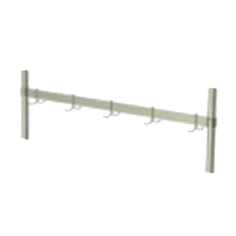 The AERO Manufacturing FUR-120 Utensil Rack Table Mount At Rear 120"W is an expertly engineered solution for organizing kitchen utensils, offering a practical and durable design tailored for various segments within the food service industry. This utensil rack features a table mount at the rear with an impressive width of 120 inches, making it suitable for large-scale culinary operations. The adjustable single-bar design enhances its adaptability, while the tubular table supports ensure stability and robustness during use. Constructed from fully welded 3/16" x 2" 300 series stainless steel flat bar, this rack is both sturdy and reliable, promising long-lasting performance in demanding kitchen environments. Furthermore, it includes plated double-pronged pot hooks, with one hook provided per linear foot, offering ample space for hanging various utensils efficiently. This meticulous design not only optimizes kitchen workflow but also sustains the high standards of hygiene essential in professional kitchens. The AERO Manufacturing FUR-120 utensil rack is an indispensable asset for chefs and kitchen staff, ensuring a well-organized, space-efficient, and seamless operation in bustling food service establishments.