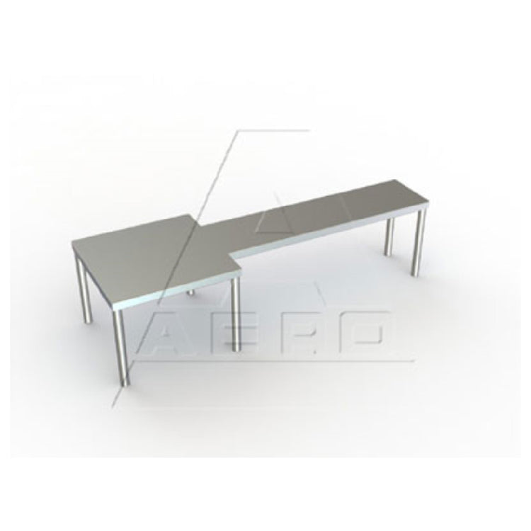 The AERO Manufacturing MWSL-1260 Microwave Shelf Table Mount With Microwave On Left is a meticulously engineered solution designed for maximizing space efficiency in various commercial settings. This product features a 60-inch width and 12-inch depth, with a dedicated left-side microwave area measuring 24 inches by 24 inches. Constructed from 16-gauge 430 stainless steel, it ensures durability and resilience, making it suitable for demanding environments. The design incorporates a 1-1/2-inch lip on all four sides, providing added safety and stability for the microwave and other items placed on the shelf. Further enhancing its structural integrity, the unit features galvanized steel "U" channel bracing under the micro-shelf section. The stainless steel tube legs are mounted with Aerolock, ensuring secure and stable installation. This microwave shelf is also KD (knock-down), which facilitates easy assembly and installation, and it is NSF certified, guaranteeing compliance with stringent health and safety standards. Whether used in commercial kitchens, restaurants, or food preparation areas, the AERO MWSL-1260 offers a robust and reliable storage solution, backed by its high-quality materials and thoughtful design.