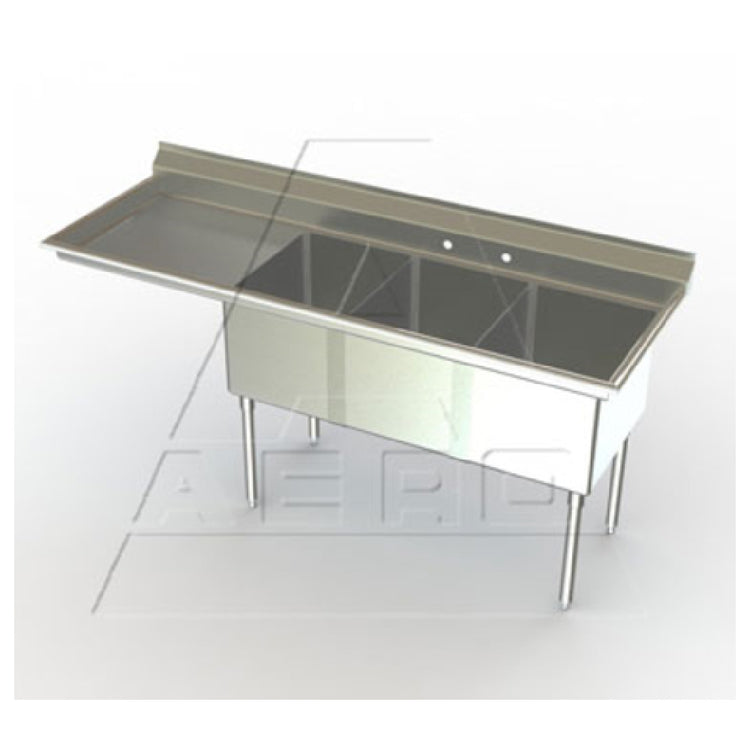 AERO Manufacturing XF3-2424-24L Delux™ Sink Three Compartment With 24" Drainboard On Left