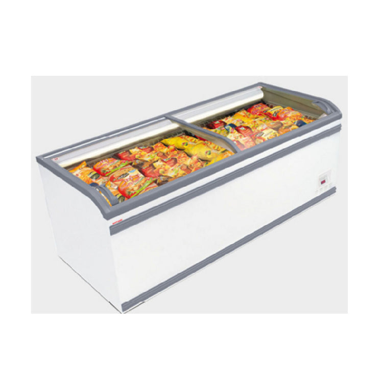 AHT Cooling Systems USA, Inc., 434140 PARIS EC 185 (U) RAL9003 - WHITE, AHT Paris Multi-Temp End Cap merchandiser, 72-3/5"W, temperature modes: refrigerator, freezer, & ice cream, interior LED lights, variable speed compressor, plastic interior drip tray, white exterior with two black bumper sets, R290 natural refrigerant with cold-wall refrigeration, 400 watts, 3.6 amps, 115v/60Hz, NEMA L5-15 P, cETLus, ETL-Sanitation
