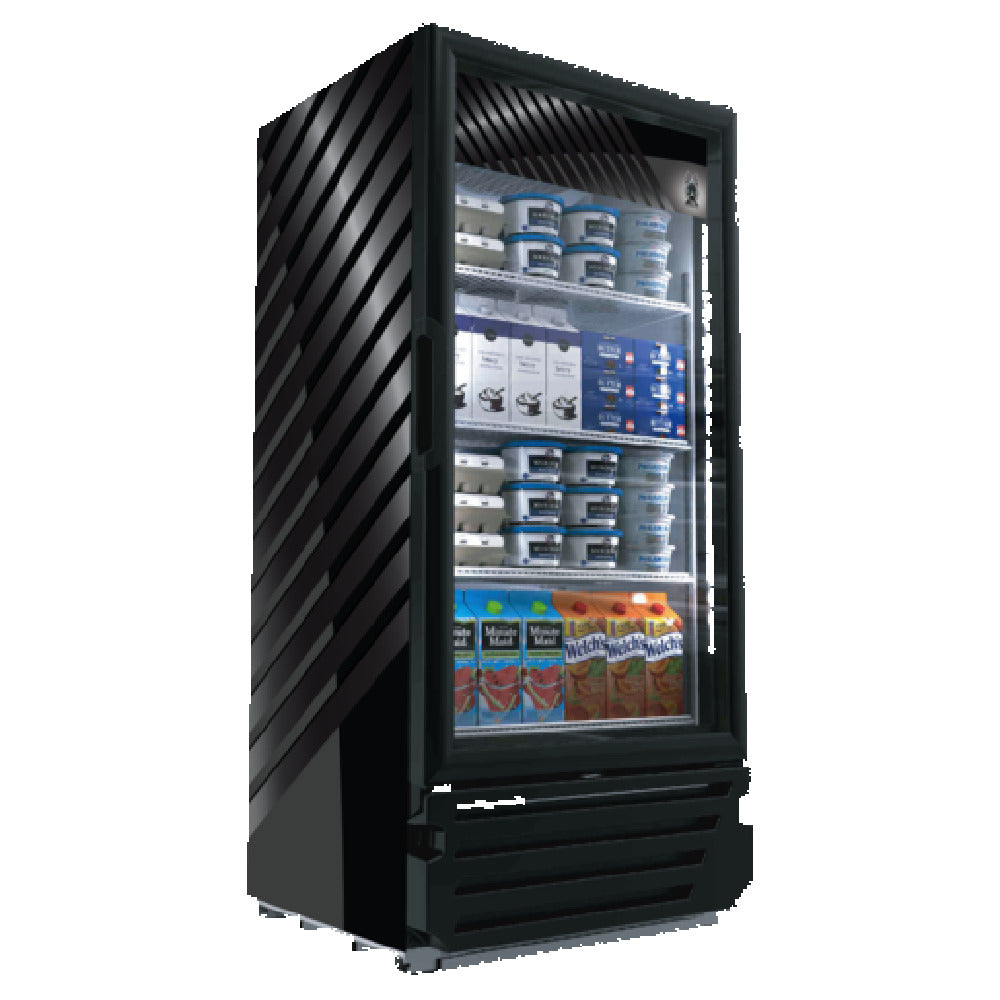 The Akita AGM-10 Refrigerated Merchandiser is a versatile two-section unit, with precise dimensions of 24-8/10"W x 22-7/10"D x 53-9/10"H, catering to various market segments such as retail, food service, and hospitality. It boasts a self-contained bottom-mounted refrigeration system with a generous capacity of 9.43 cubic feet, making it suitable for displaying a range of chilled products. The digital thermostat ensures accurate temperature control, maintaining a range of 32-4.6°F to preserve product freshness. The AGM-10 is equipped with an automatic defrost function, minimizing maintenance effort and enhancing operational efficiency. Featuring two hinged glass doors and ten shelves, it provides excellent visibility and organization for displayed items. The interior is constructed from white painted steel, while the exterior is finished in black painted steel, ensuring durability and a sleek appearance. The unit employs R290 Hydrocarbon refrigerant, which is environmentally friendly, and operates with a 1/10 HP motor, using 115v/60/1-ph, 3.2 amps, and a NEMA 5-15P plug. Certified by UL and NSF, the Akita AGM-10 ensures compliance with safety and sanitation standards, making it an outstanding addition to any commercial setting seeking reliable and efficient refrigerated merchandising solutions.