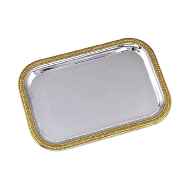Alegacy Foodservice Products, 59034, Cater Tray, rectangular, 23-1/4" x 14", with handles, high rimmed, gold trim, stainless steel (Packed By: 12 Each Per Case)