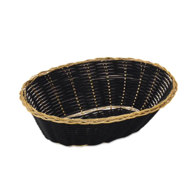 Alegacy Foodservice Products, 599, Basket, oval, 9-1/4" x 6-1/2" x 2-3/4", black vinyl with gold rim (Packed By: 12 Dozen Per Case)